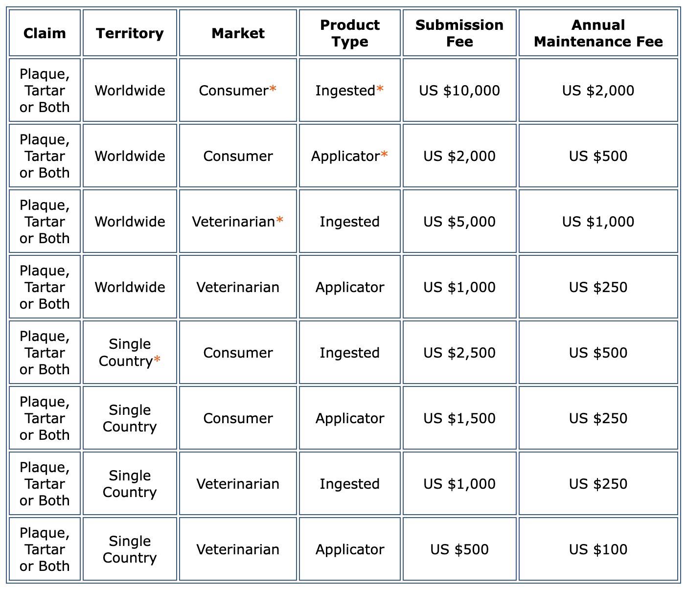 2. The Submission Fee is not refunded if the submission is reviewed and product is not awarded the VOHC Seal.